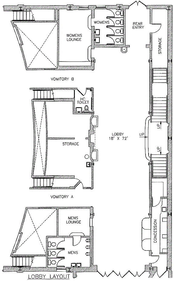 | Stage rear – single door, 2’-10” wide x 7’-0” high (clear), 12” above pavement |